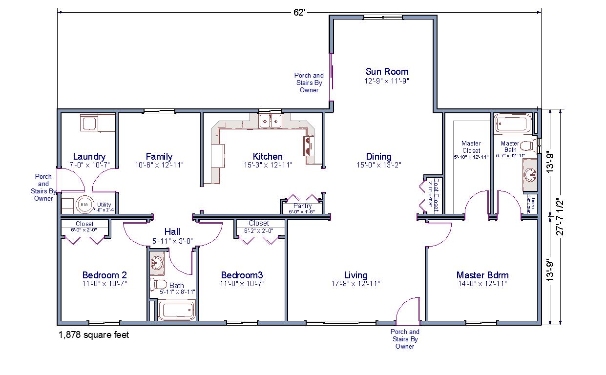 Our Design team is skilled and ready to customize any of our ranch designs to meet your needs. Take a look at our other Ranch floor plans to discover more options here.